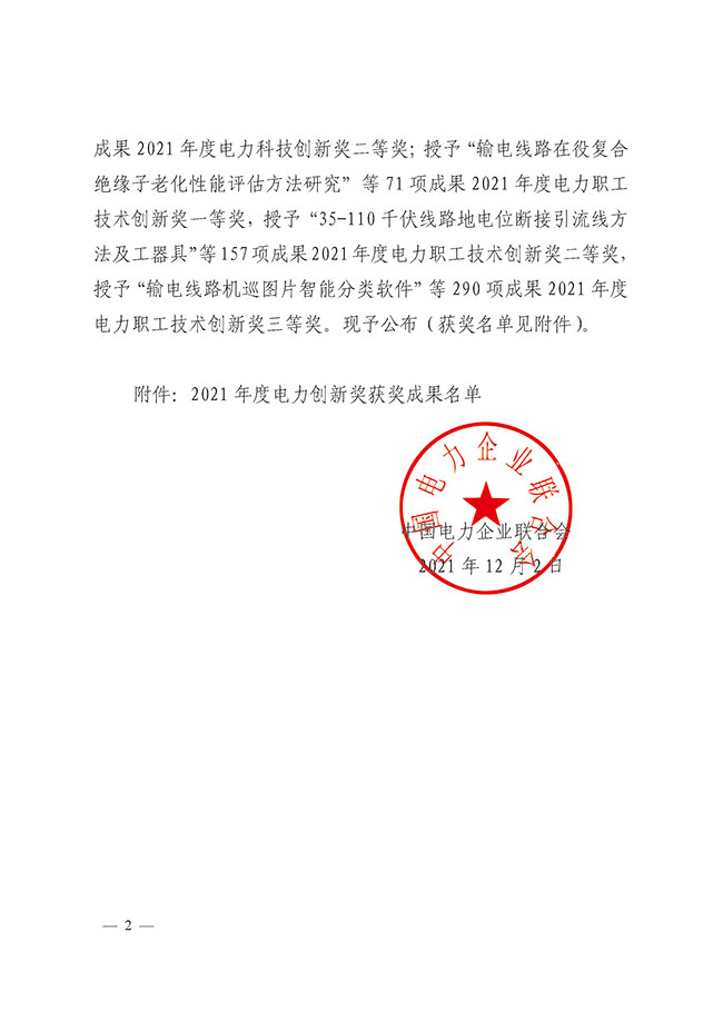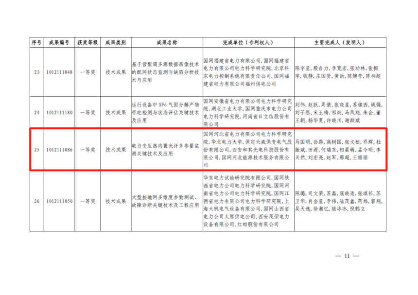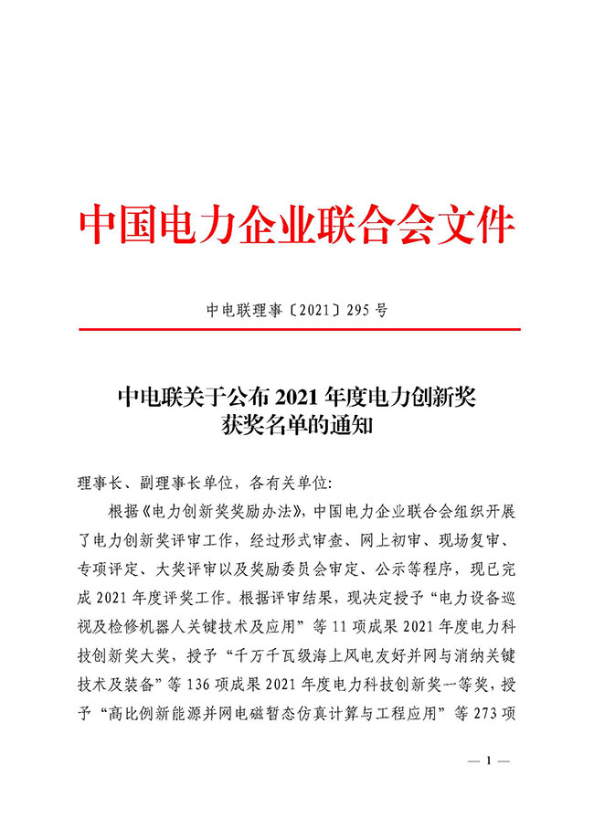 近日,保变电气参与申报的《电力变压器内置光纤多参量监测关键技术及应用》项目荣获2021年度中国电力创新一等奖。