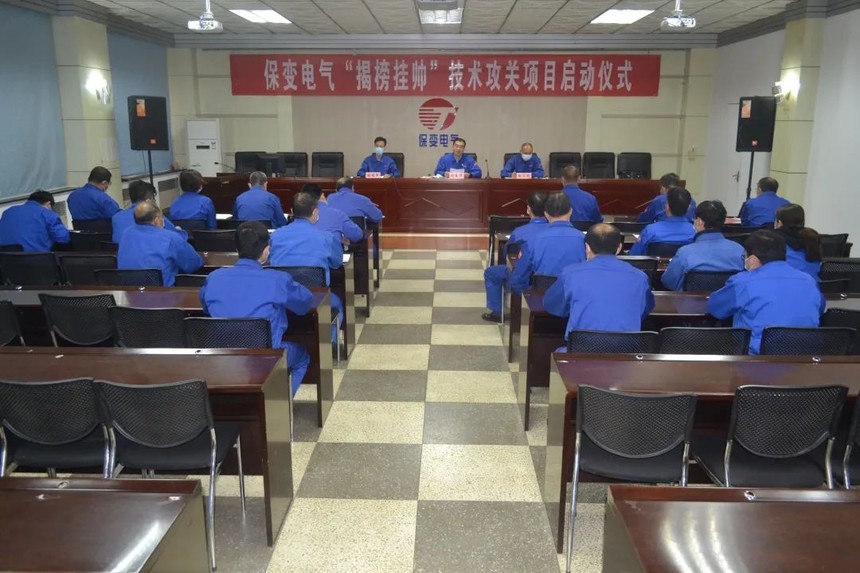 先行先试、逐步完善、全面推进。2022年5月11日,保变电气召开2022年“揭榜挂帅”技术攻关项目发布及启动会议。为促进党建联建共建工作与中心工作的深度融合,发挥基层党支部的战斗堡垒作用,党员在急、难、危、重任务冲锋在前的先锋模范作用,引导党组织和党员勇于攻坚克难,保变电气党委结合工作实际,在各党支部开展党员带头重点项目攻关“揭榜挂帅”活动,针对生产经营活动中的“卡脖子”问题,立项攻关,扎实推进“揭榜挂帅”重点工作落地落实。